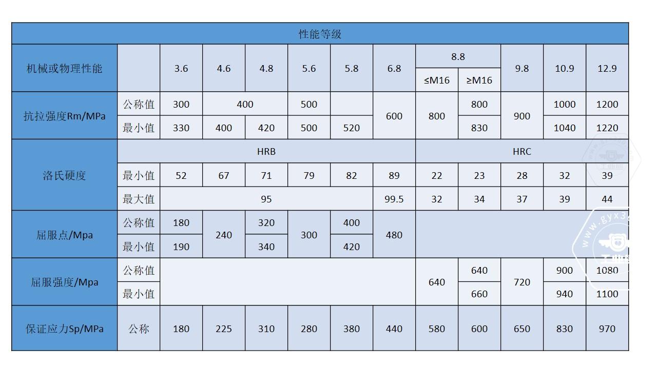 鋼質(zhì)連接用螺栓性能等級分為 3.6、4.6、4.8、5.6、6.8、8.8、9.8、10.9、12.9等10余個等級,其中8.8級及以上螺栓材質(zhì)為低碳合金鋼或中碳鋼并經(jīng)熱處理(淬火、回火),通稱為高強(qiáng)度螺栓,8.8級以下(不含8.8級)通稱為普通螺栓。