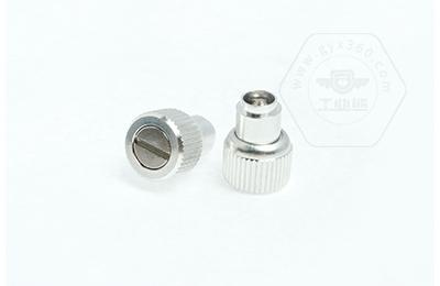 手緊螺釘?shù)膲恒T套具有壓花齒,壓裝于于機(jī)箱或薄鈑孔內(nèi)(:薄板的鉆孔徑相對(duì)應(yīng)彈簧螺釘?shù)膲糊X徑有一定要求的,形成一個(gè)外露的彈簧螺釘,用手?jǐn)Q另一端(即手?jǐn)Q端).因其里面固定有彈簧,螺釘相對(duì)于薄板的另一端來(lái)回進(jìn)出。