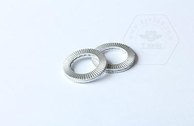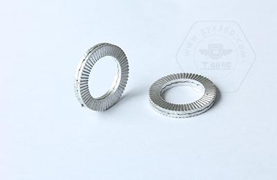 | DIN25201雙疊自鎖墊圈的原理:獨特的墊圈內(nèi)側(cè)斜齒面傾斜角度 α 大于螺栓螺紋傾斜角度 β 。 裝配時, 內(nèi)側(cè)斜齒面是相對的, 墊圈外側(cè)放射狀的凸紋面 (外滾花齒面) 的摩擦系數(shù)要比內(nèi)側(cè)斜齒面 的摩擦系數(shù)大, 且與兩端接觸面成咬合狀態(tài)。 當(dāng)連接件受到振動, 并使螺栓發(fā)生松動趨勢時, 僅僅允許兩片墊圈內(nèi)側(cè)斜齒間相對抬升錯動, 產(chǎn)生擡升張力。 獨特的齒牙系統(tǒng)利用張力在緊固的 連接處產(chǎn)生壹個很高的抵抗力來經(jīng)受振動力,從而達到 100% 的防松效果。 |