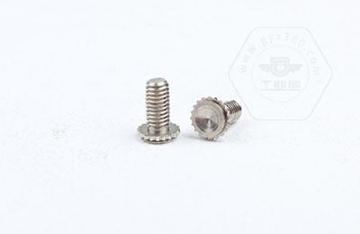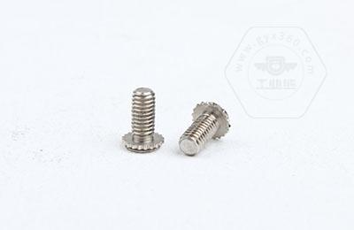 在使用過程中需在基體上開一個小孔,將壓鉚螺釘放入孔內(nèi),采用鉚壓設(shè)備平行的均勻的在頭部平壓,因壓鉚螺釘?shù)念^部下有齒紋壓花,當壓入后,基體在壓鉚螺釘?shù)闹車a(chǎn)生變形,和齒紋發(fā)生咬合現(xiàn)象,從而形成一個牢固的外螺紋。