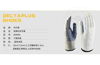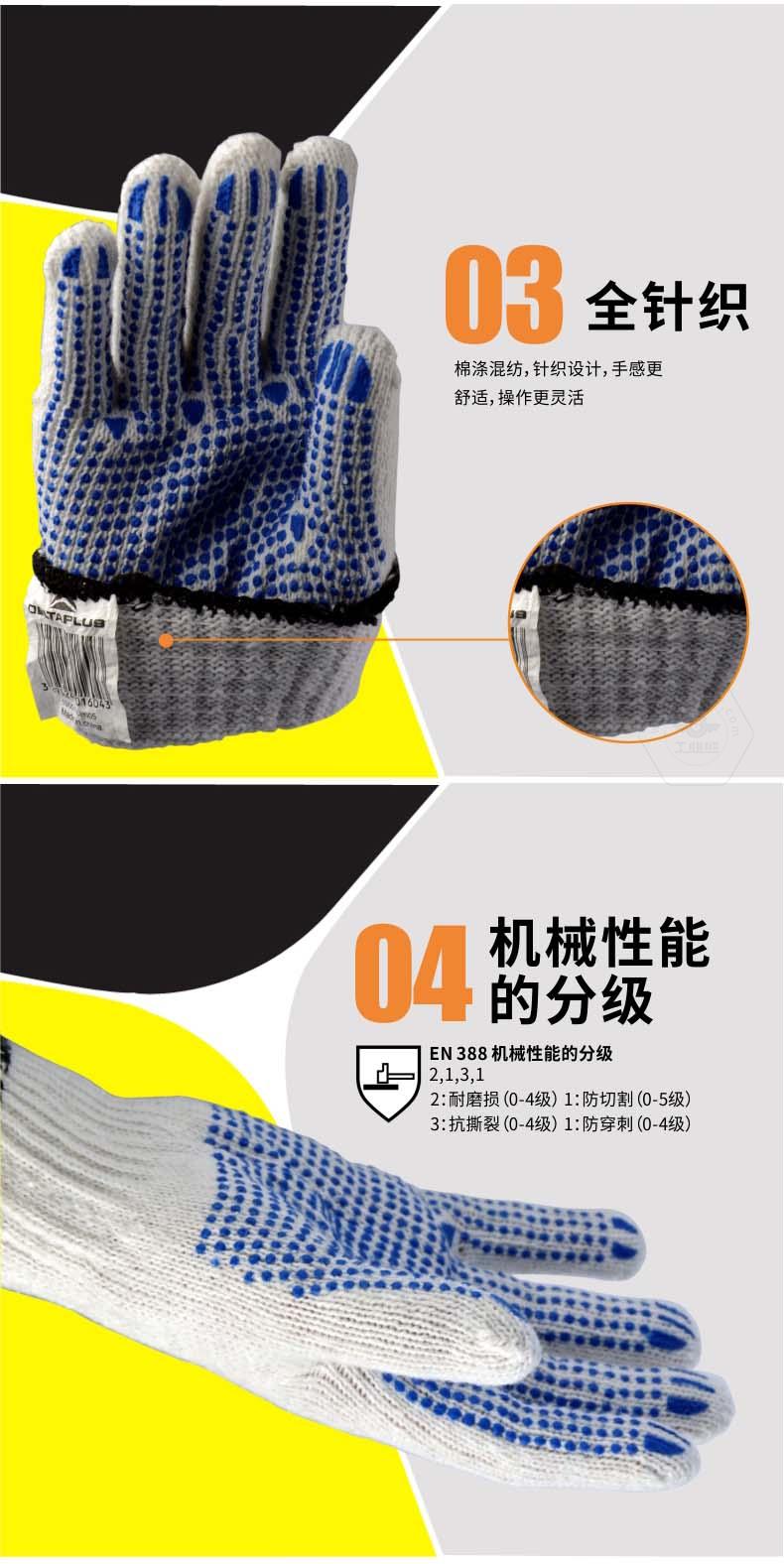商品名稱(chēng):代爾塔 PVC點(diǎn)膠 滌棉 線(xiàn)手套 工作 勞保手套 防滑耐磨損抗撕裂 208006 白色/藍(lán)色9#