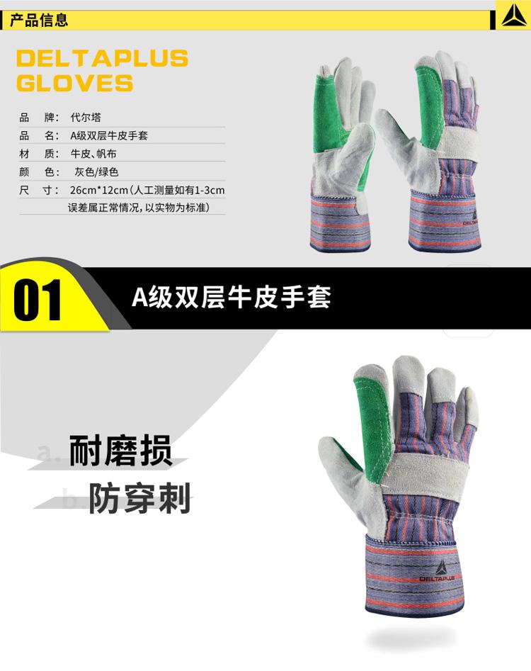 商品名稱:代爾塔 A級雙層牛皮勞保手套 強(qiáng)耐磨防刺穿安.全手套 機(jī)械加工修理造船204208 經(jīng)濟(jì)款-藍(lán)色/灰色10#