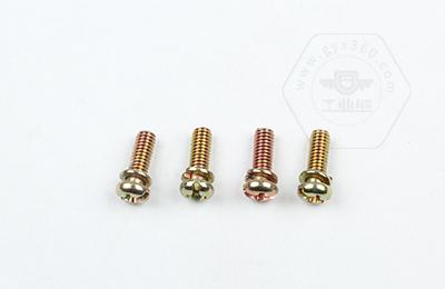 • 產(chǎn)品描述:組合螺釘,又稱為組合件,是指組合供應(yīng)的一類緊固件,如將某種中期螺釘或螺栓、自攻螺釘與平墊圈或彈簧墊圈、鎖緊墊圈組合供應(yīng)。 何謂二組合、三組合呢?二組合就是一螺絲配一平墊或是彈墊組合而成,三組合是螺絲配一彈墊和一個(gè)平墊組合而成。