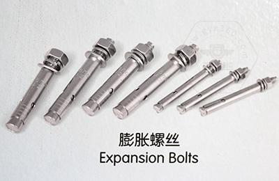 碳鋼膨脹螺栓的性能等級(jí)分為4.8、8.8、9.810.9、12.9等,常用材料:Q215、Q235、2545號(hào)鋼,對(duì)于高等級(jí)高強(qiáng)度的膨脹螺栓可選用15Cr、20Cr、40Cr、15MnVB,、30CrMrSi等機(jī)械性能較高的合金鋼。