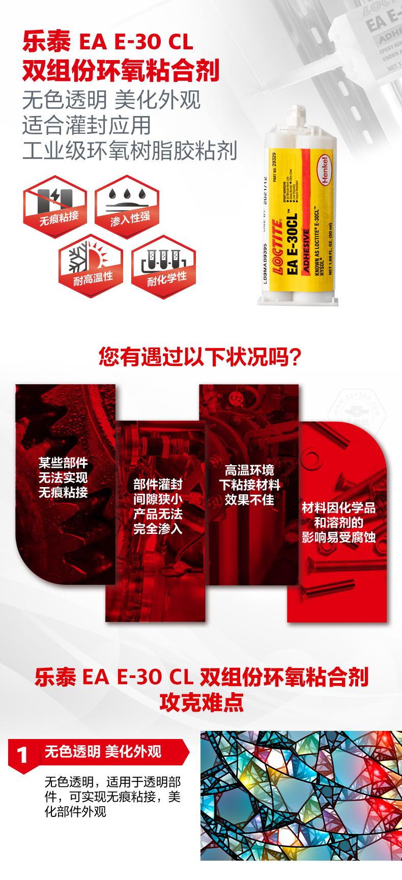 樂泰EA E-30 CL雙組份環(huán)氧粘合劑是一款無色透明的工業(yè)級環(huán)氧樹脂膠粘劑。樂泰EA E-30 CL雙組份環(huán)氧粘合劑適用于透明部件,可實現無痕粘接,美化外觀。樂泰EA E-30 CL雙組份環(huán)氧粘合劑低粘度、滲入性強,能夠有效滲入小間隙并填充縫隙,適合灌封應用。樂泰EA E-30 CL雙組份環(huán)氧粘合劑還具備耐高溫性和耐化學性,可用于玻璃、光纖、陶瓷、金屬和許多硬質塑料的粘接。