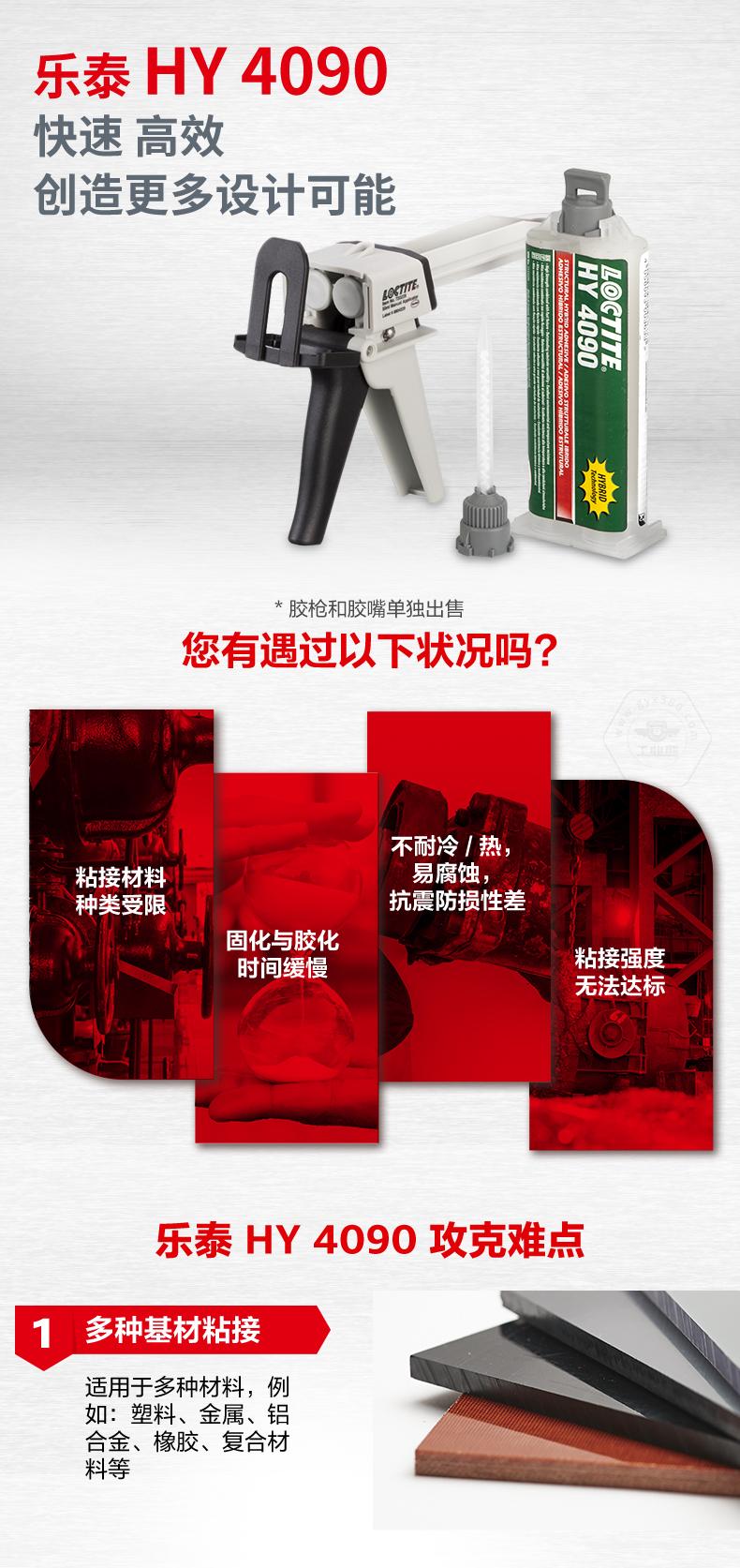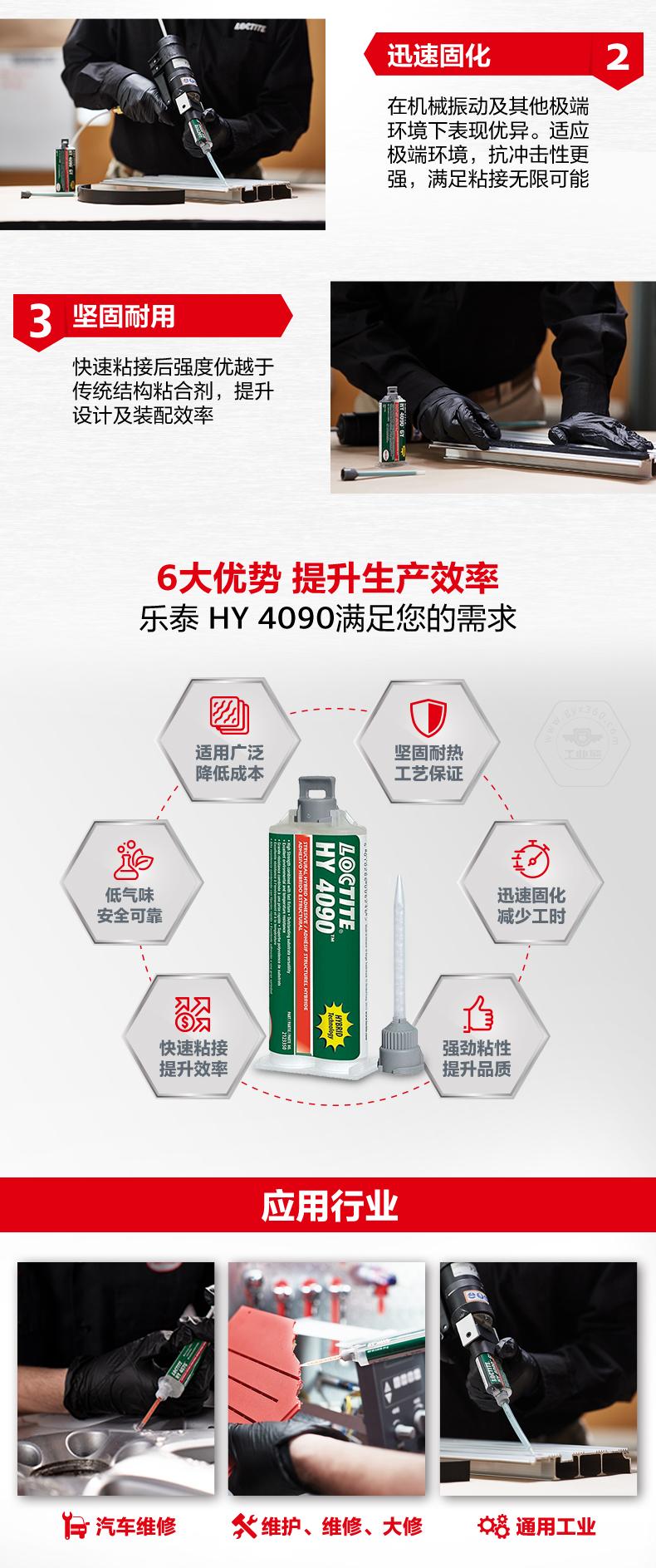 樂泰HY4090主打迅速固化、強勁粘性和多種基材粘接。樂泰HY4090適用于塑料、金屬、鋁合金、橡膠及復(fù)合材料,兼顧低氣味、安全可靠。樂泰HY4090在機械振動及其他極端環(huán)境下表現(xiàn)優(yōu)異,快速粘接后強度優(yōu)于傳統(tǒng)結(jié)構(gòu)粘合劑,可提升設(shè)計與裝配效率,適用于汽車維修、維護維修大修和通用工業(yè)。