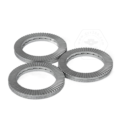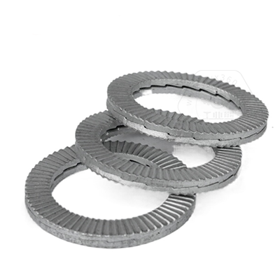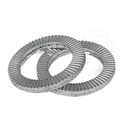 • 產(chǎn)品描述:DIN25201SPS 雙疊自鎖墊圈,也叫碳鋼加大防松鎖緊墊圈、愜入式鎖緊墊圈、雙疊自鎖墊圈抗振防松動墊圈、自動鎖緊功能墊圈、安全鎖緊墊圈、雙層防松墊片、減震墊圈、對鎖墊圈、楔齒墊圈。DIN25201SPS 雙疊自鎖墊圈由二片不同斜紋墊圈組成,組裝時內(nèi)斜齒面相對,外側(cè)放射狀齒面與兩端接觸面形成咬合狀態(tài),當(dāng)連接件受到振動并產(chǎn)生螺栓松動隱患時,只允許兩個墊片內(nèi)側(cè)的斜齒相對錯動,導(dǎo)致張力升高,從而防止松
