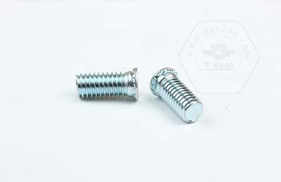 在使用過(guò)程中需在基體上開(kāi)一個(gè)小孔,將壓鉚螺釘放入孔內(nèi),采用鉚壓設(shè)備平行的均勻的在頭部平壓,因壓鉚螺釘?shù)念^部下有齒紋壓花,當(dāng)壓入后,基體在壓鉚螺釘?shù)闹車(chē)a(chǎn)生變形,和齒紋發(fā)生咬合現(xiàn)象,從而形成一個(gè)牢固的外螺紋。